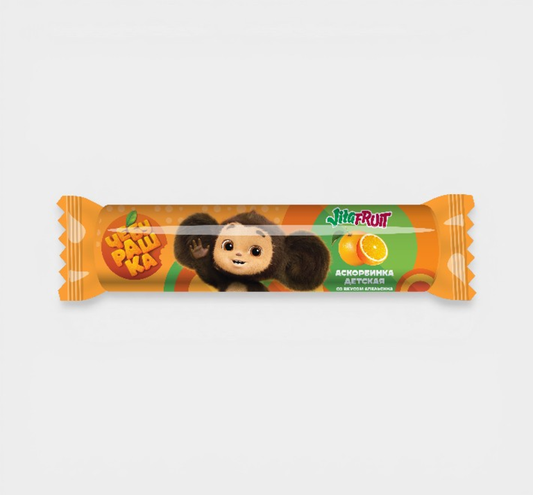 Детская аскорбинка (источник витамина С) со вкусом апельсина.