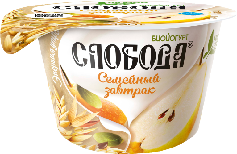 Биойогурт 5% «Слобода.Семейный завтрак» с грушей, злаками и семенами льна, 210 г