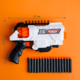 Бластер, 16 пуль в комплекте. Работает от 4-х батареек тип AA (не входят в комплект).