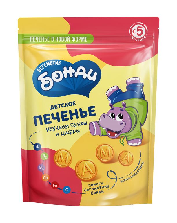 Детское печенье «Бегемотик Бонди» «Изучаем буквы и цифры», 80 г