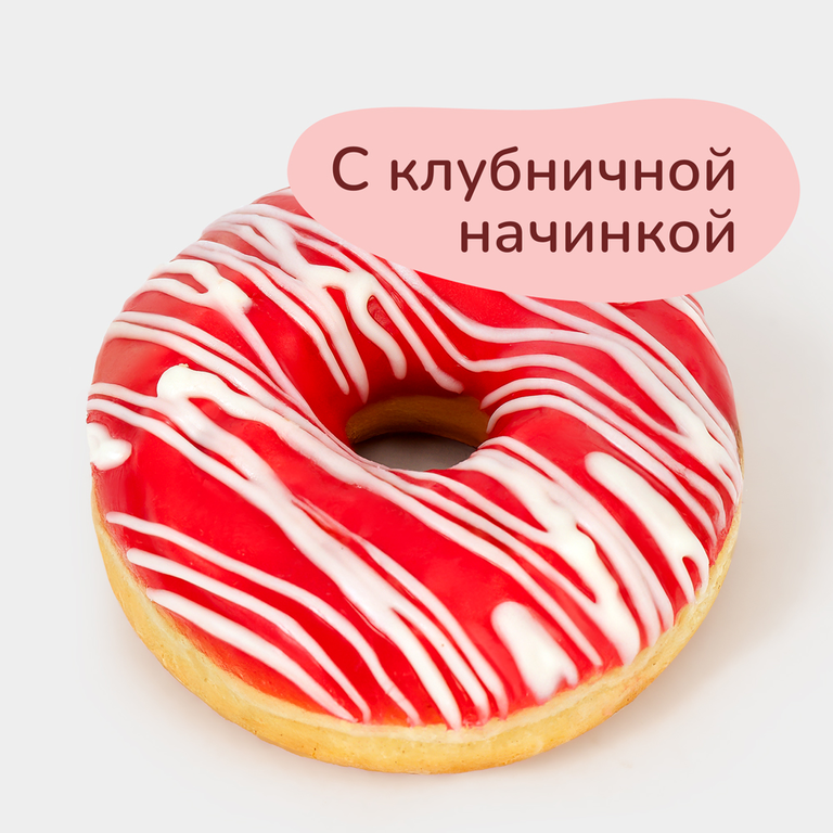 Аппетитный пончик, у которого внутри нежнейшего теста скрывается мягкая клубничная начинка.