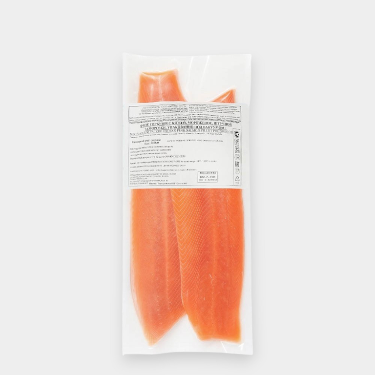 Филе тихоокеанской горбуши на коже замороженное, 0,7 - 1 кг