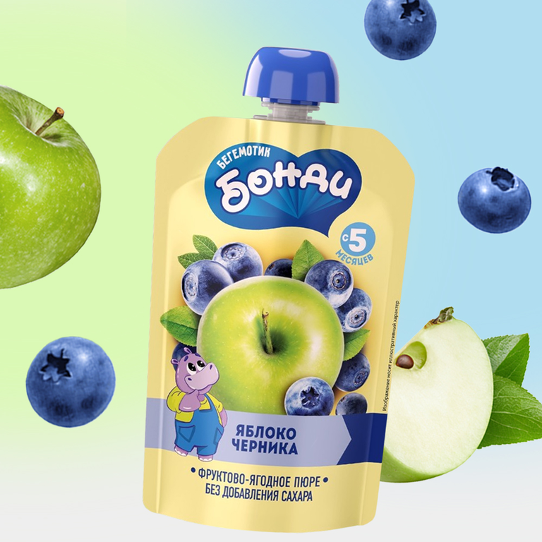 Фруктовое пюре «Бегемотик Бонди» Яблоко-черника, 90 г