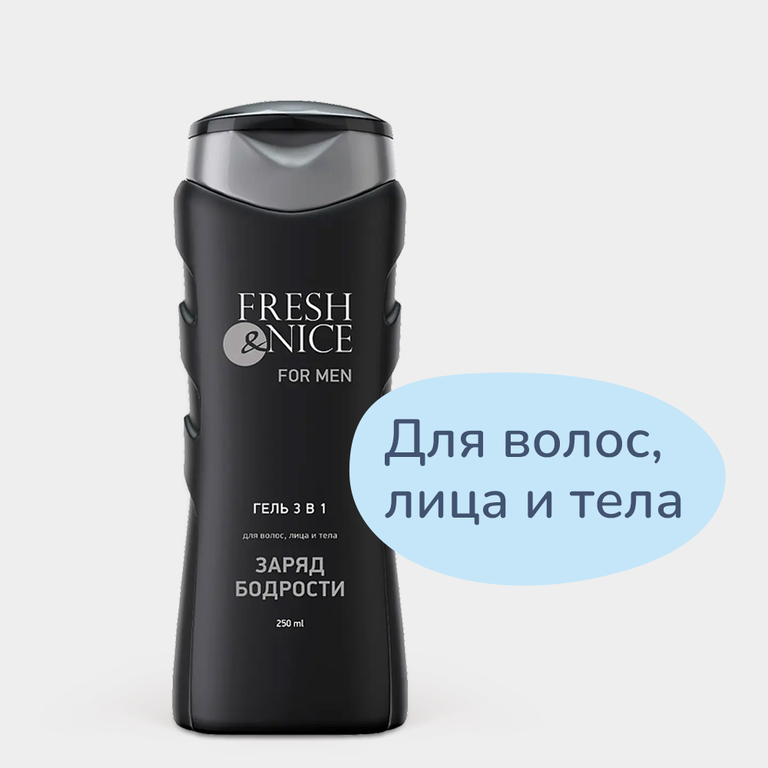 Гель 3 в 1 для волос, лица и тела «Fresh&Nice» FOR MEN Заряд бодрости, 250 мл