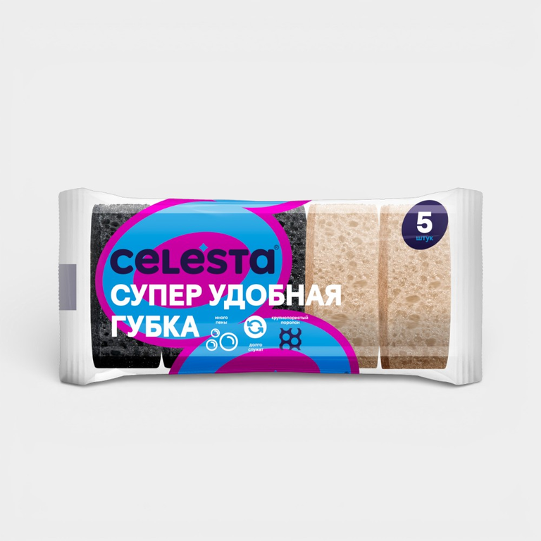 Гигиеничные губки из пенополиуретана (поролона) и абразивной фибры, позволяющей удалять сильные загрязнения с любых поверхностей.