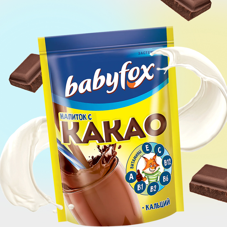 Ароматный напиток от популярной торговой марки Babyfox – отличный источник энергии и для маленьких непосед и тех, кто постарше. Его можно приготовить буквально за пару мгновений: просто добавьте в кружку с какао горячее молоко!