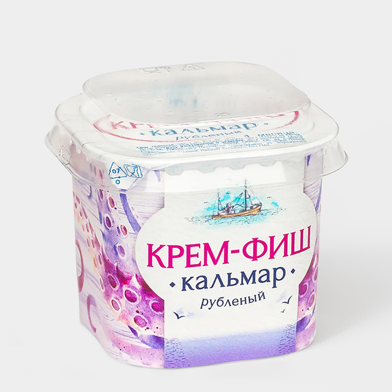 Нежный паштет из филе гигантского кальмара и крема на растительных маслах.