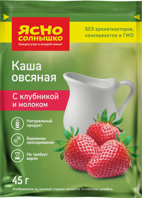 Каша овсяная «Ясно солнышко» с клубникой и молоком, 45 г