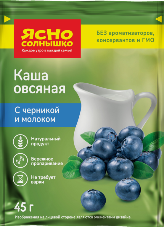 Каша овсяная «Ясно солнышко» с черникой и молоком, 45 г