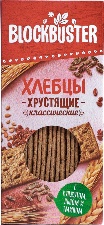 Хлебцы хрустящие «Blockbuster» Классические с кунжутом, льном и тмином, 130 г