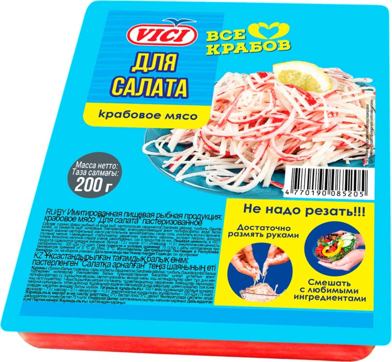 Уже нарезанное красивыми тонкими полосками сочное и нежное «крабовое мясо» – очень удобный ингредиент для приготовления салатов.