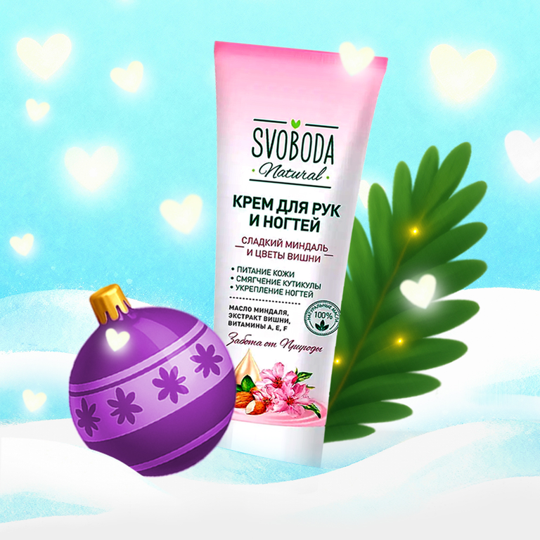 Крем для рук и ногтей «Svoboda Natural» Сладкий миндаль и цветы вишни, 75 мл