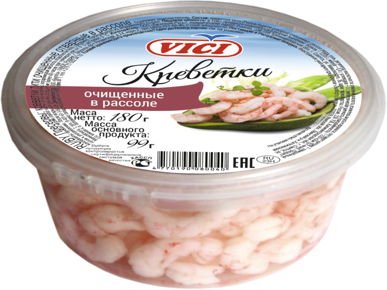 Очищенные дикие тепловодные креветки в легком рассоле.
