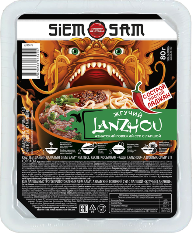 Лапша «SiemSam» со вкусом азиатского говяжьего супа «Жгучий Lanzhou», 80 г