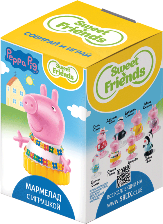 В каждой коробочке сладостей – коллекционная фигурка одного из героев мультсериала «Свинка Пеппа».