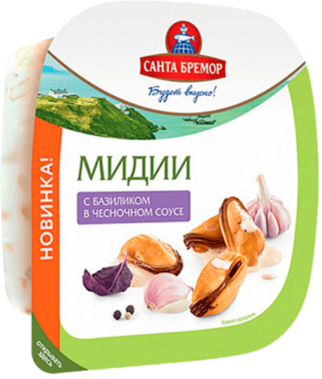 Мидии «Русское море» с базиликом в чесночном соусе, 150 г