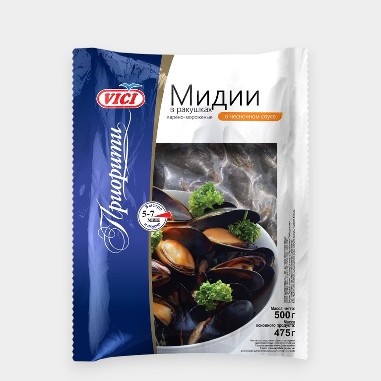 Мидии «Vici» Приорити в ракушках, в чесночном соусе, 500 г, 500 г