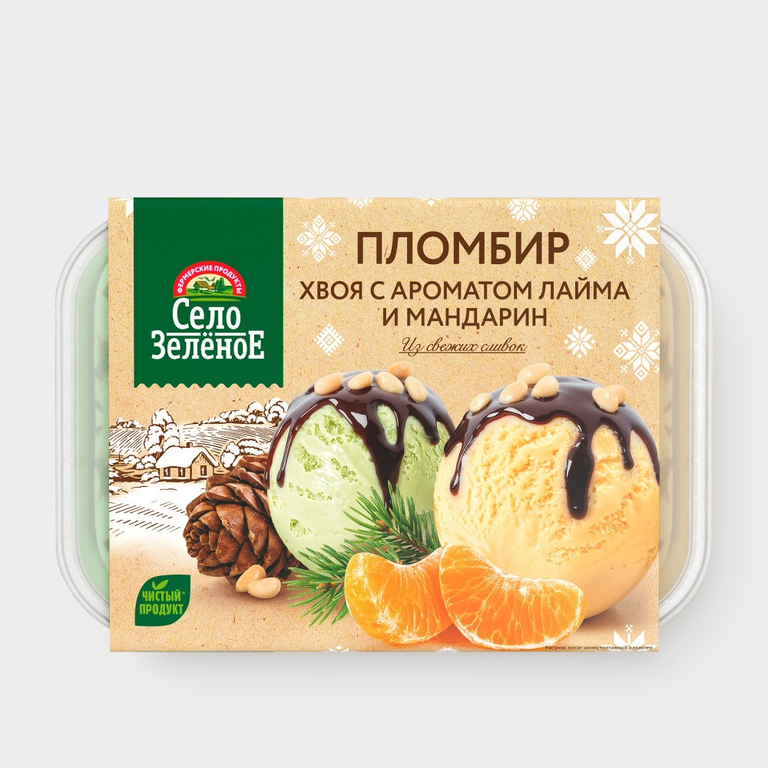 Мороженое «Село Зеленое» хвоя и мандарин с кедровыми орешками, 450 г