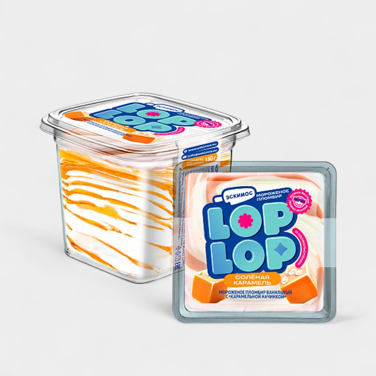 Мороженое «LOP LOP» пломбир ванильный с карамельной начинкой, 180 г
