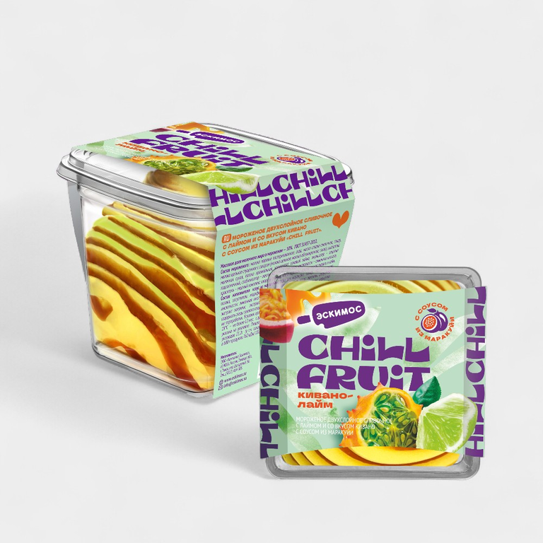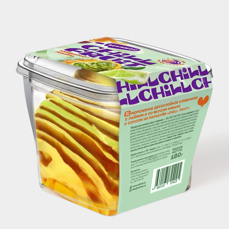 Мороженое двухслойное сливочное «CHILL FRUIT» кивано-лайм, с соусом из маракуйи, 180 г