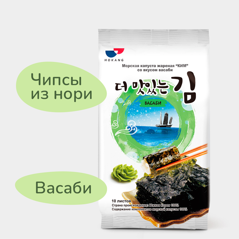 Морская капуста «Hokang» жареная «КИМ» со вкусом васаби, 5 г