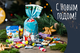 Набор упакован в красочный бирюзовый мешочек (плёнка).
