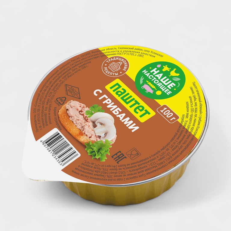 Паштет нежный «Наше настоящее» печеночный с грибами, 100 г