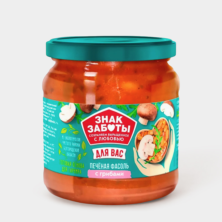 Печеная фасоль «Знак Заботы» с грибами, 480 г