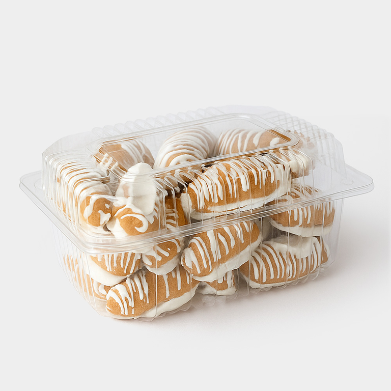 Печенье покрыто белой глазурью с тонким ароматом ванили.
