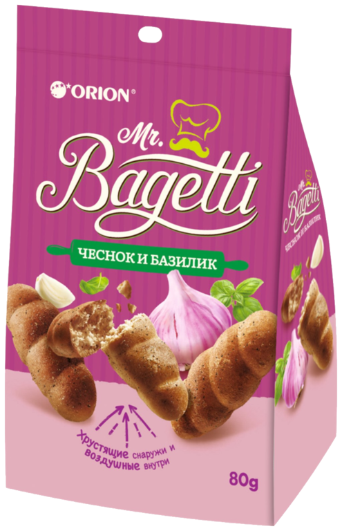 Печенье «Orion» Mr. Bagetti Чеснок и базилик, 80 г