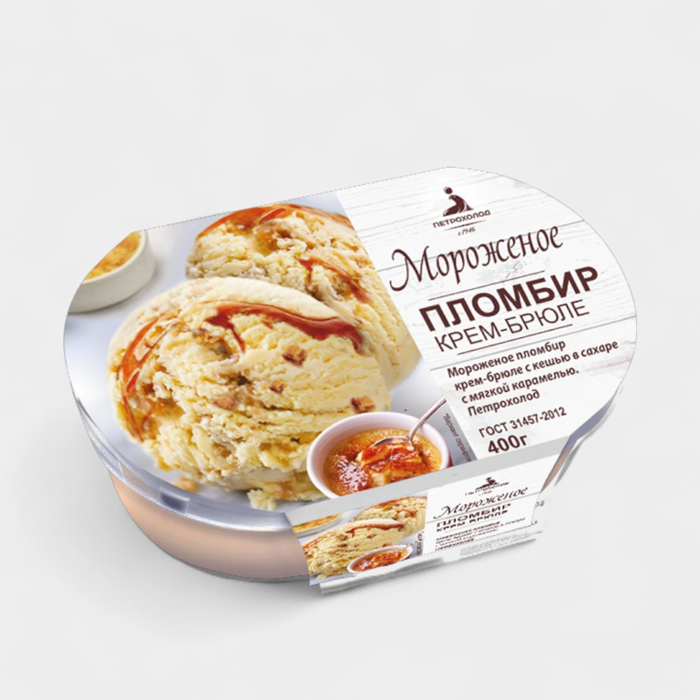 Пломбир «Петрохолод» крем-брюле с кешью в сахаре с мягкой карамелью, 400 г