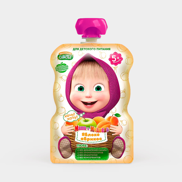 Пюре «Маленькое счастье» Маша и медведь, Яблоко-абрикос, 90 г