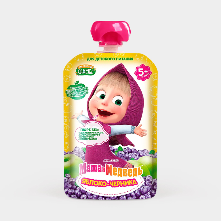 Пюре «Маленькое счастье» Маша и медведь, Яблоко-Черника, 90 г