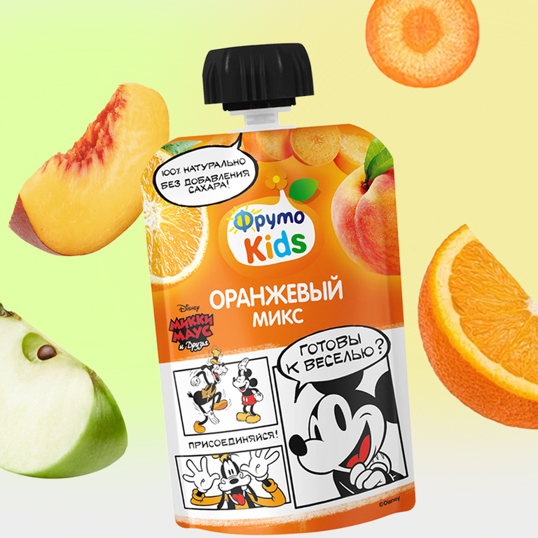 Пюре «ФрутоKids» «Оранжевый микс» яблоко, персик, апельсин, морковь, 90 г