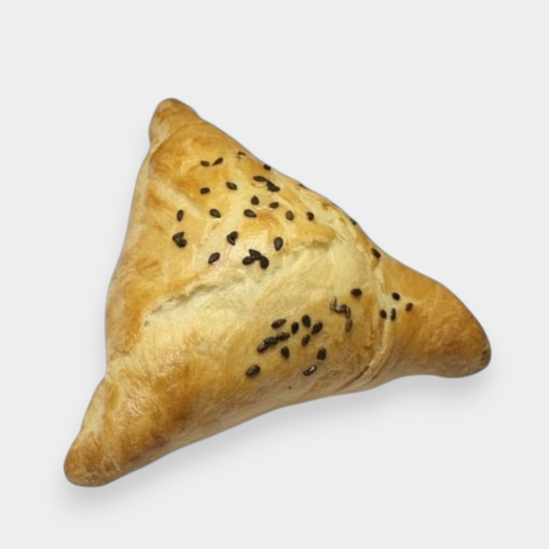 Самса из слоеного теста с начинкой из свинины и говядины.