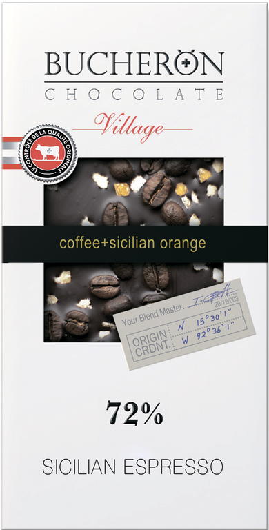 Горький шоколад премиум-класса с утонченным ароматом и свежим вкусом, который по-особенному раскрывают кусочки сицилийского апельсина. Зерна кофе, добавленные в шоколад, делают его еще более насыщенным и интересным.