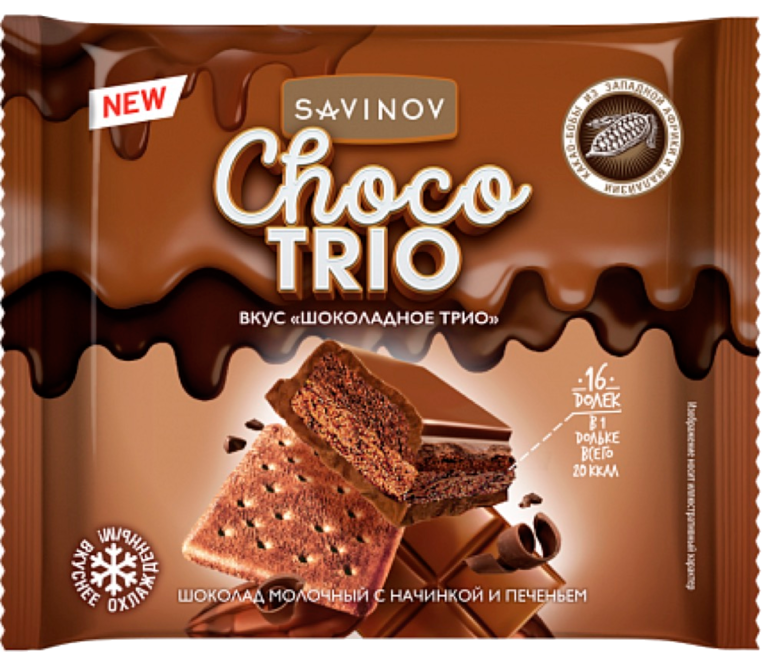 Шоколад молочный «Savinov» с печеньем и начинкой Choco trio, 60 г