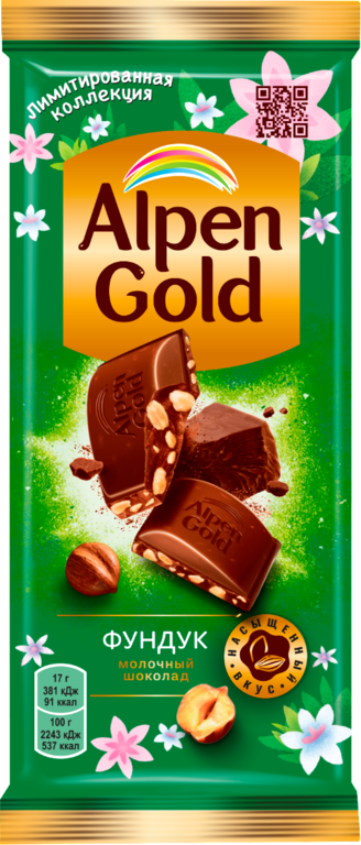 Шоколад молочный «Alpen Gold» с дробленым фундуком, 85 г