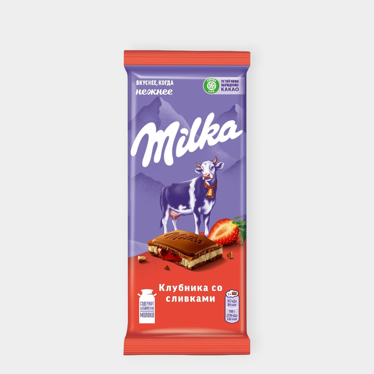 Шоколад молочный «Милка» с клубничной и сливочной начинками, 80 г