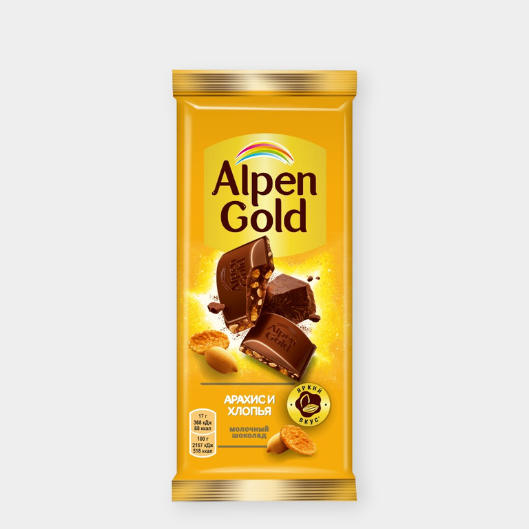 Шоколад молочный «Alpen Gold» с арахисом и кукурузными хлопьями, 80 г