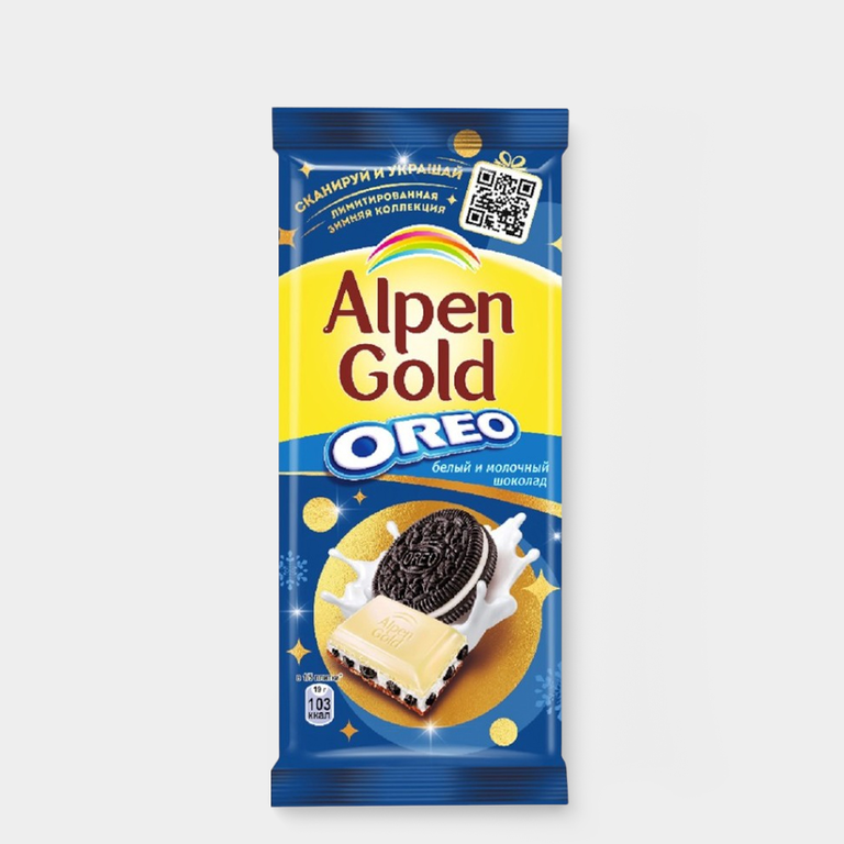 Молочный шоколад с белым шоколадом с начинкой со вкусом ванили и кусочками печенья «Орео».