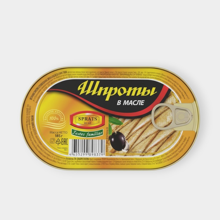 Натуральные рыбные консервы с характерным копченым вкусом.