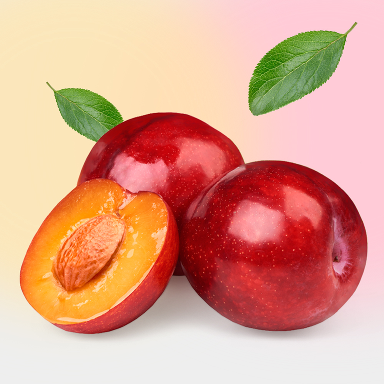Плотная, сочная мякоть со сладким, насыщенным сливовым вкусом.