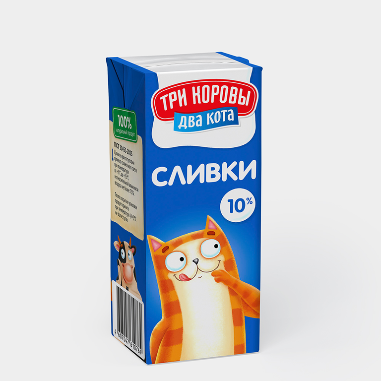Сливки 10% «Три коровы Два кота» питьевые, 200 г