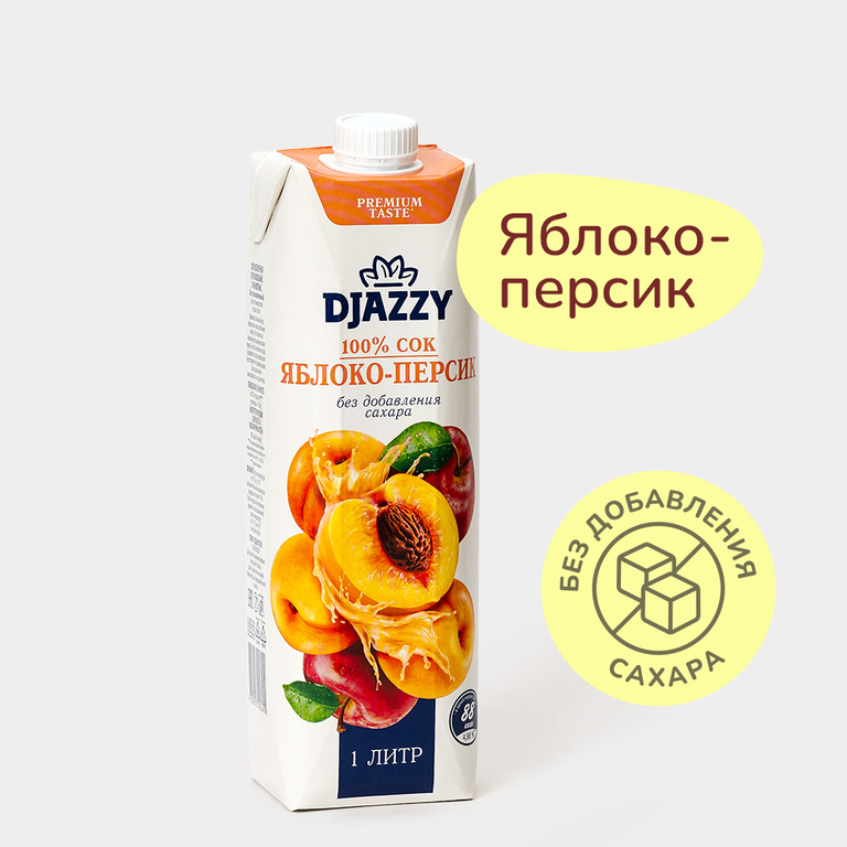 Яблочно-персиковый сок «Djazzy» может быть отличной основой для приготовления желе, коктейлей и смузи.