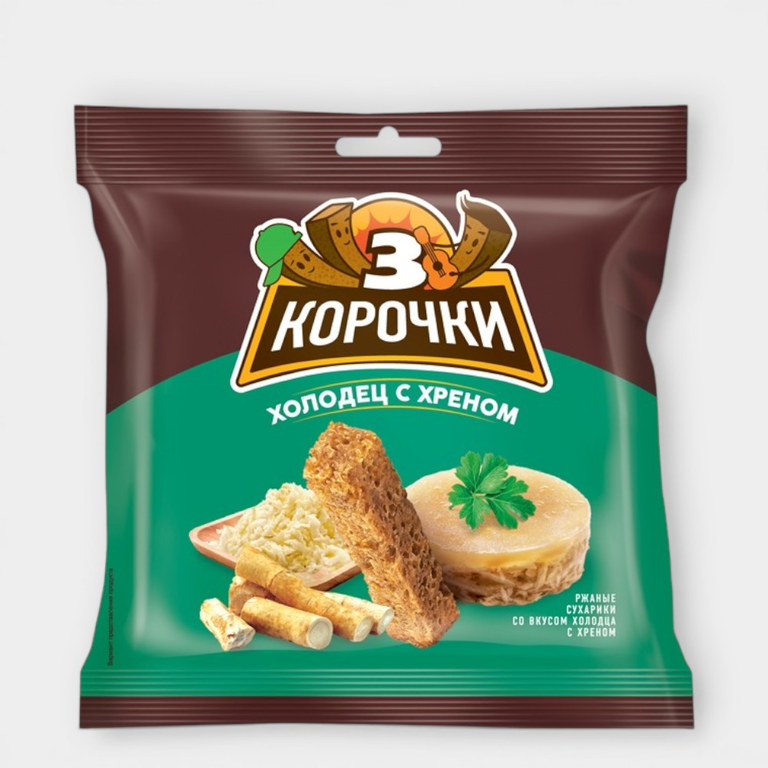 Сухарики «3 Корочки» со вкусом холодца с хреном, 100 г