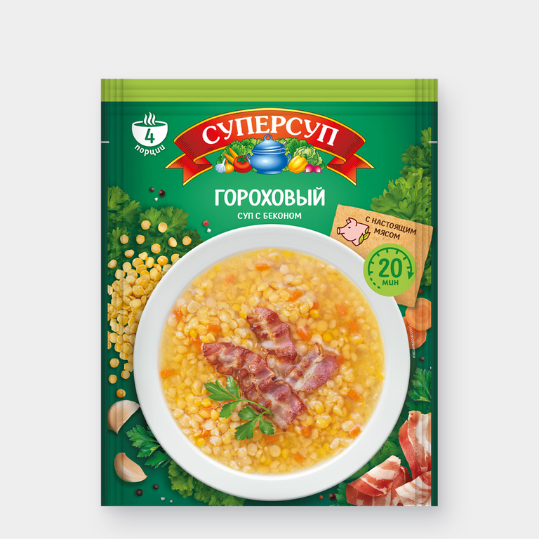 «Суперсуп» – удобная смесь для быстрого приготовления сытного горячего блюда. В ней есть все необходимое: горох, мясо, душистые специи и пряности.