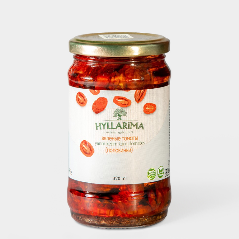 Половинки спелых вяленых томатов, пропитанных растительным маслом с добавлением уксуса и специй.