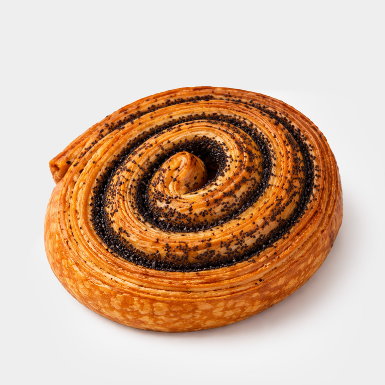 Сдобная булочка-улитка из пшеничной муки с большим количеством маковой начинки.