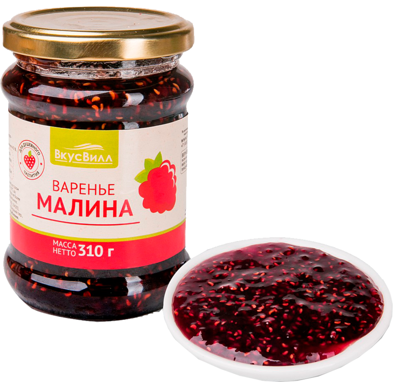 Классическое варенье из ароматной спелой малины, выращенной в садах Тульской области, и сахара.
